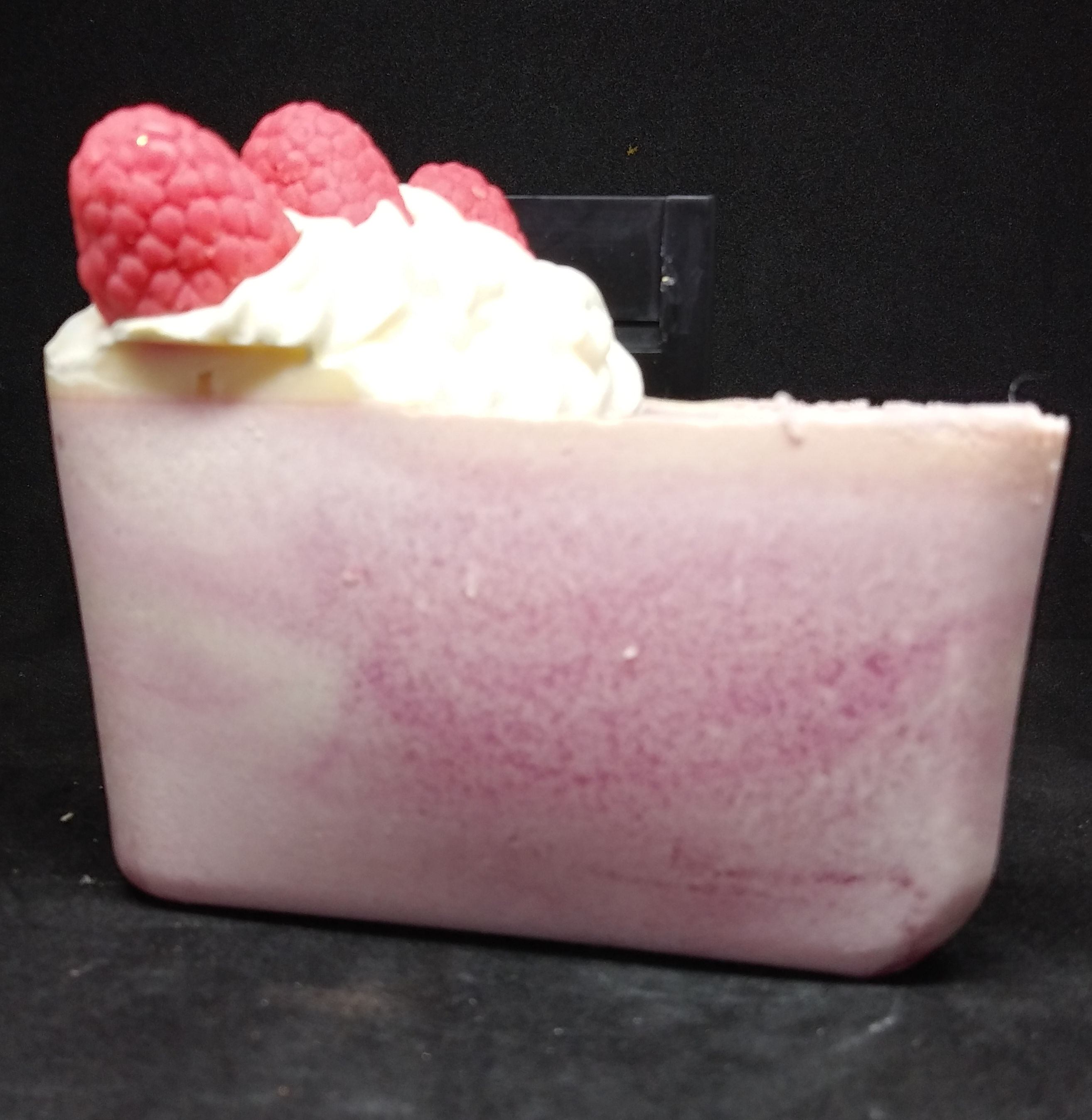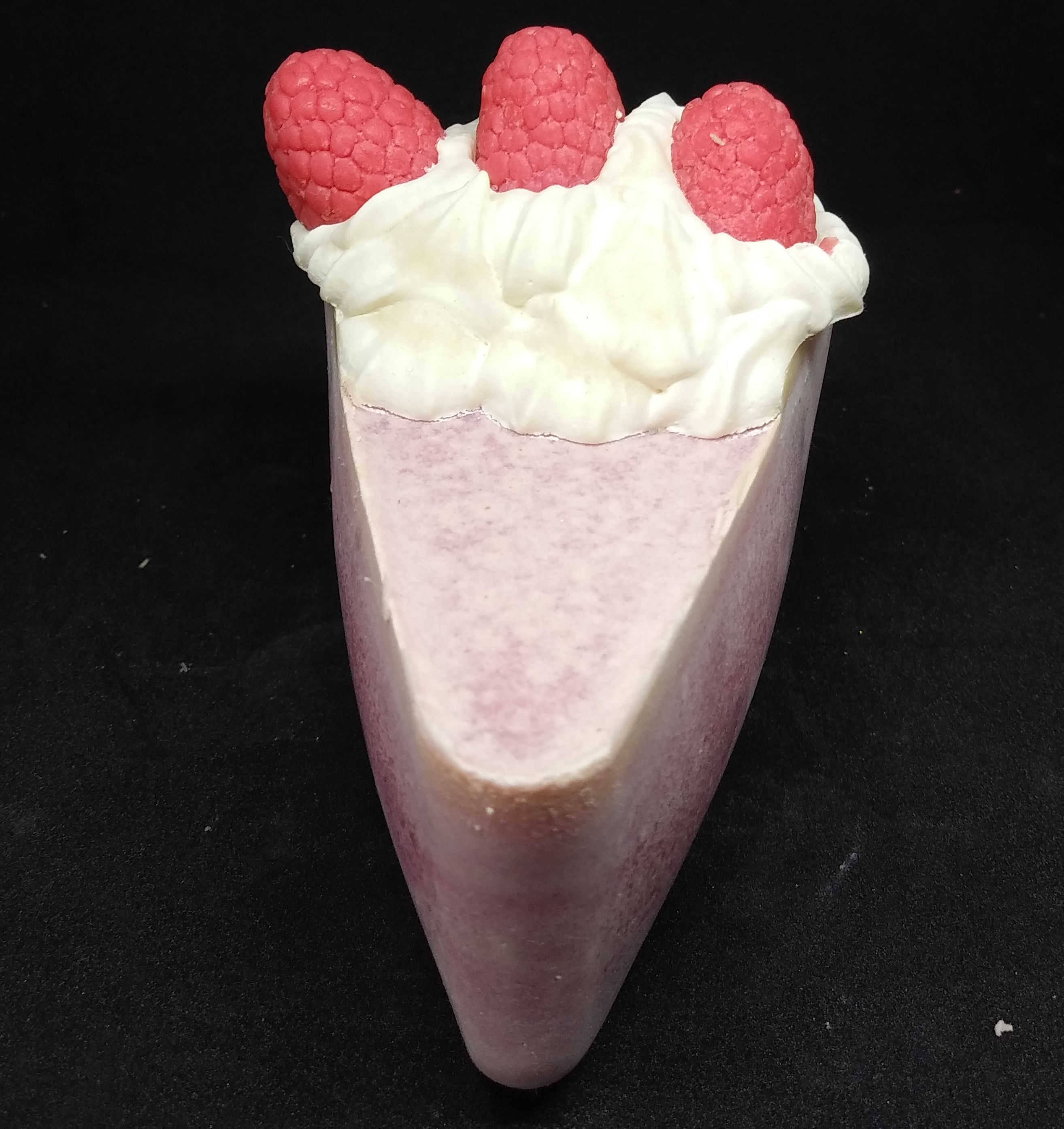 Inspired by the eponymous ending theme of Azumanga Daioh, this soap is scented with Black Raspberry Vanilla fragrance (a blend of raspberries, strawberries, coconut, lemon, peach and vanilla), and decorated with hand-piped soap frosting and raspberry embeds. It may look and smell delicious, but please don't eat it!
