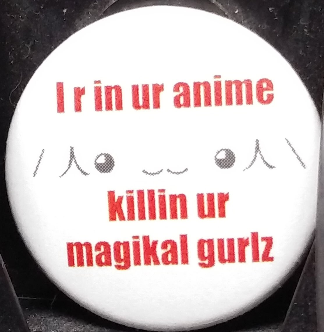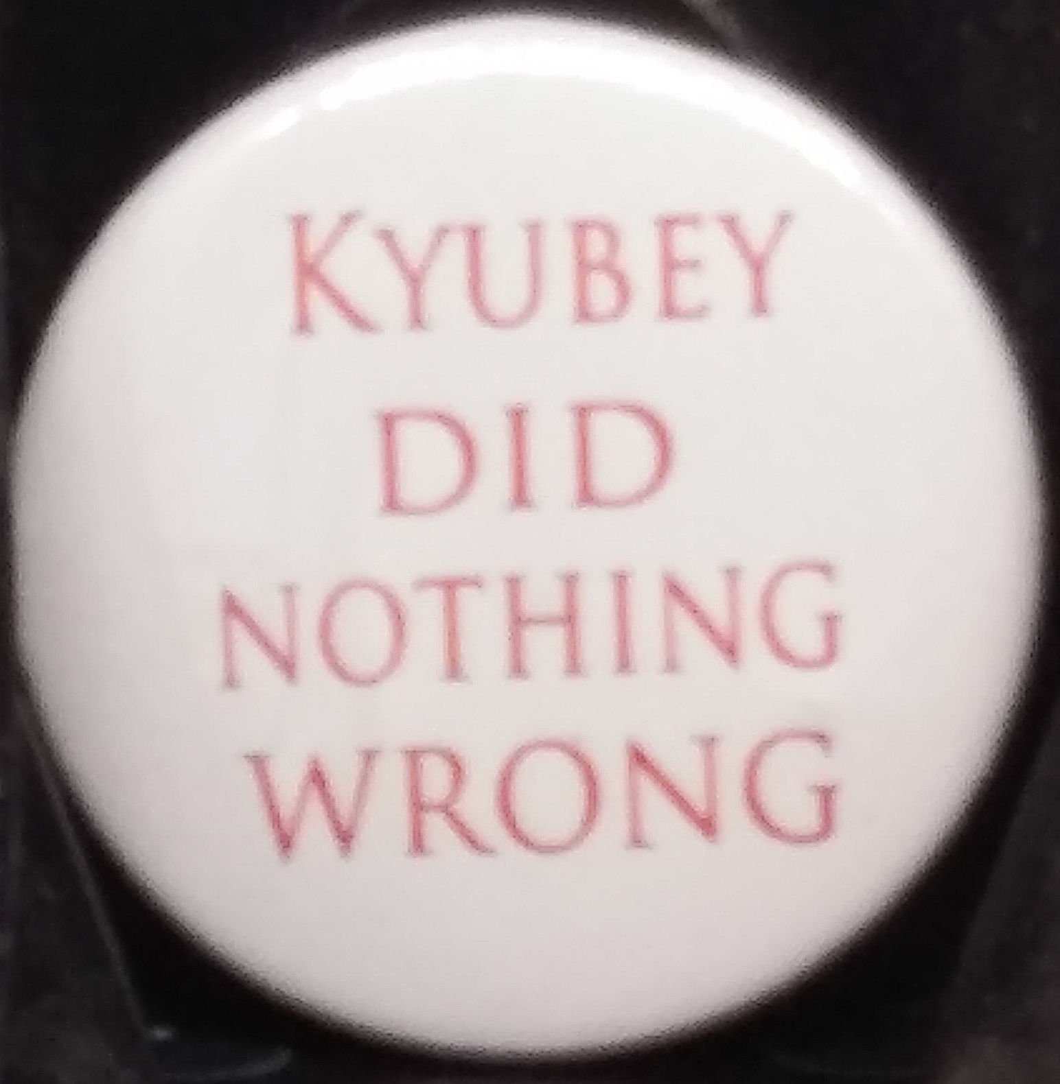 Six 1 1/2 inch diameter pinback buttons featuring Kyubey from the hit anime series "Mahou Shoujo Madoka Magica." Buttons are also available individually, or as magnets or keychains. If choosing the magnet or keychain option, at checkout, in the dialogue box that says, "Add a note for Black Unicorn Wood," please specify which designs you would like.
