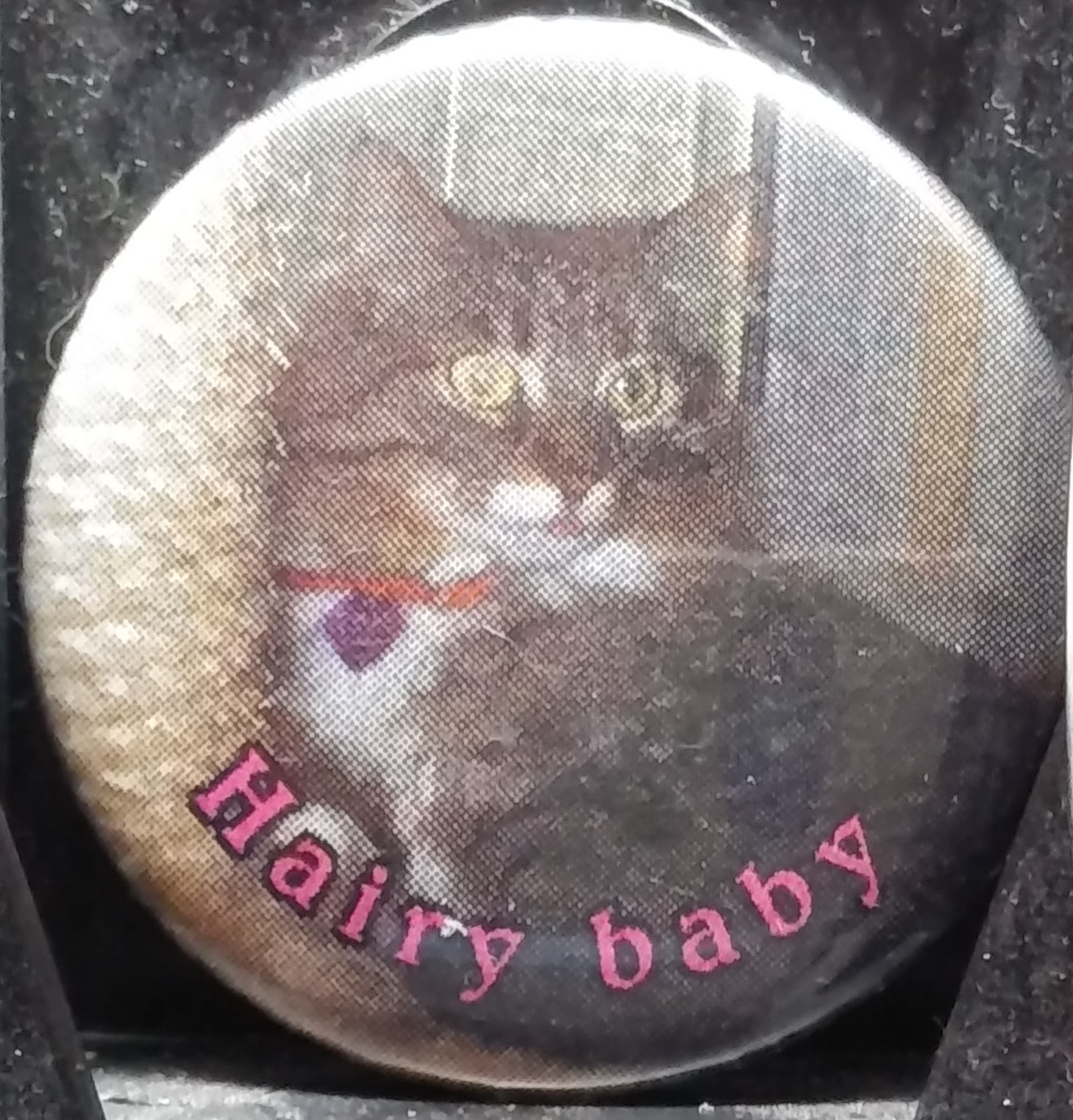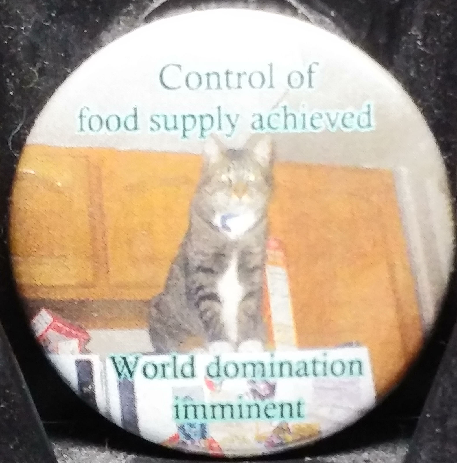 Photos of cats with funny captions. Each one is 1 1/2 inches in diameter. Fun fact: the cats depicted on these buttons are the past and present feline members of my family. These buttons are available individually, in groups of three, or as a set of five. Any of these designs can also be made as magnets or keychains. If choosing the magnet or keychain option, at checkout, in the dialogue box that says, "Add a note for Black Unicorn Wood," please specify which designs you would like. More cat buttons available here.