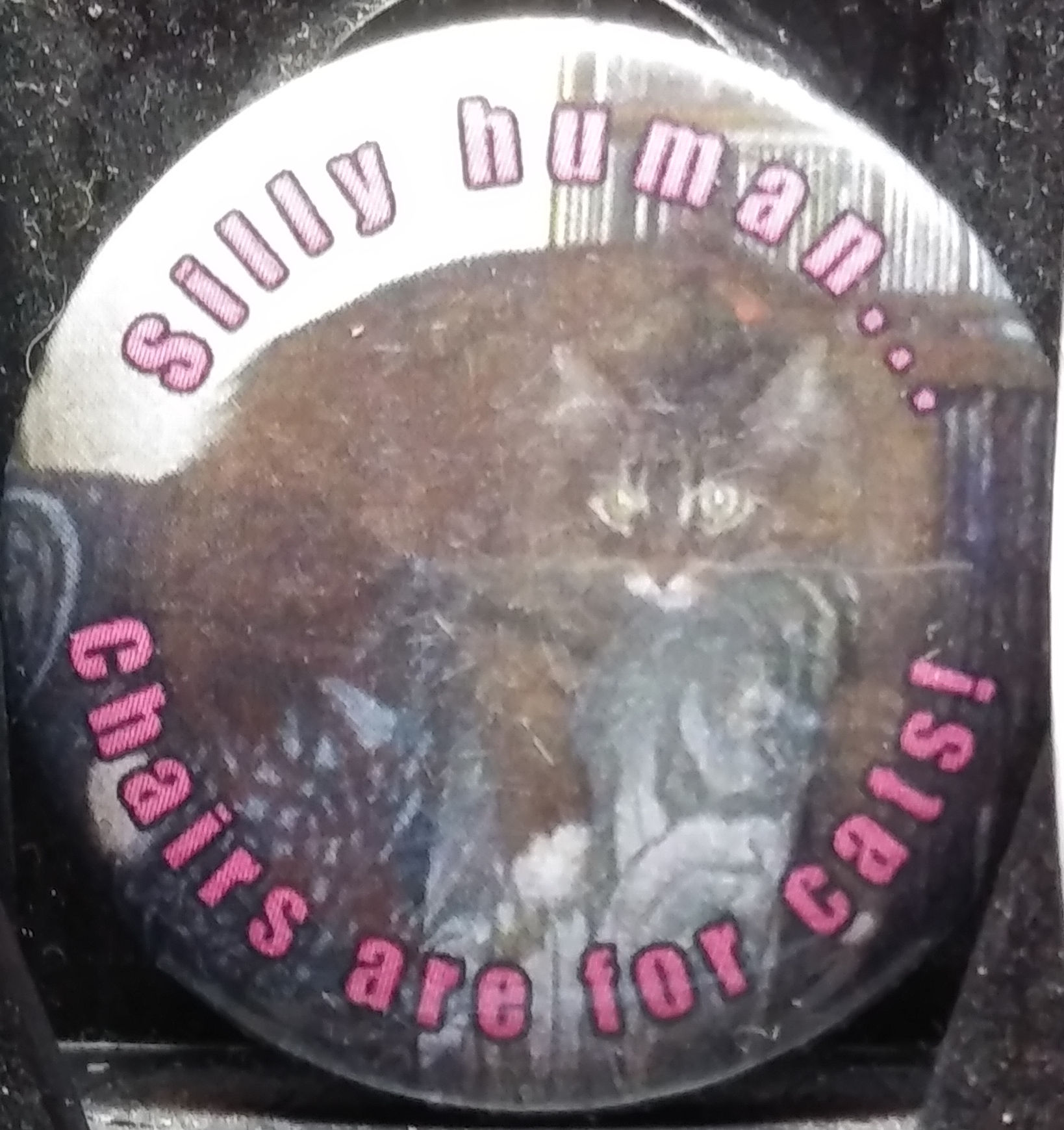 Photos of cats with funny captions. Each one is 1 1/2 inches in diameter. Fun fact: the cats depicted on these buttons are the past and present feline members of my family. These buttons are available individually, in groups of three, or as a set of five. Any of these designs can also be made as magnets or keychains. If choosing the magnet or keychain option, at checkout, in the dialogue box that says, "Add a note for Black Unicorn Wood," please specify which designs you would like.