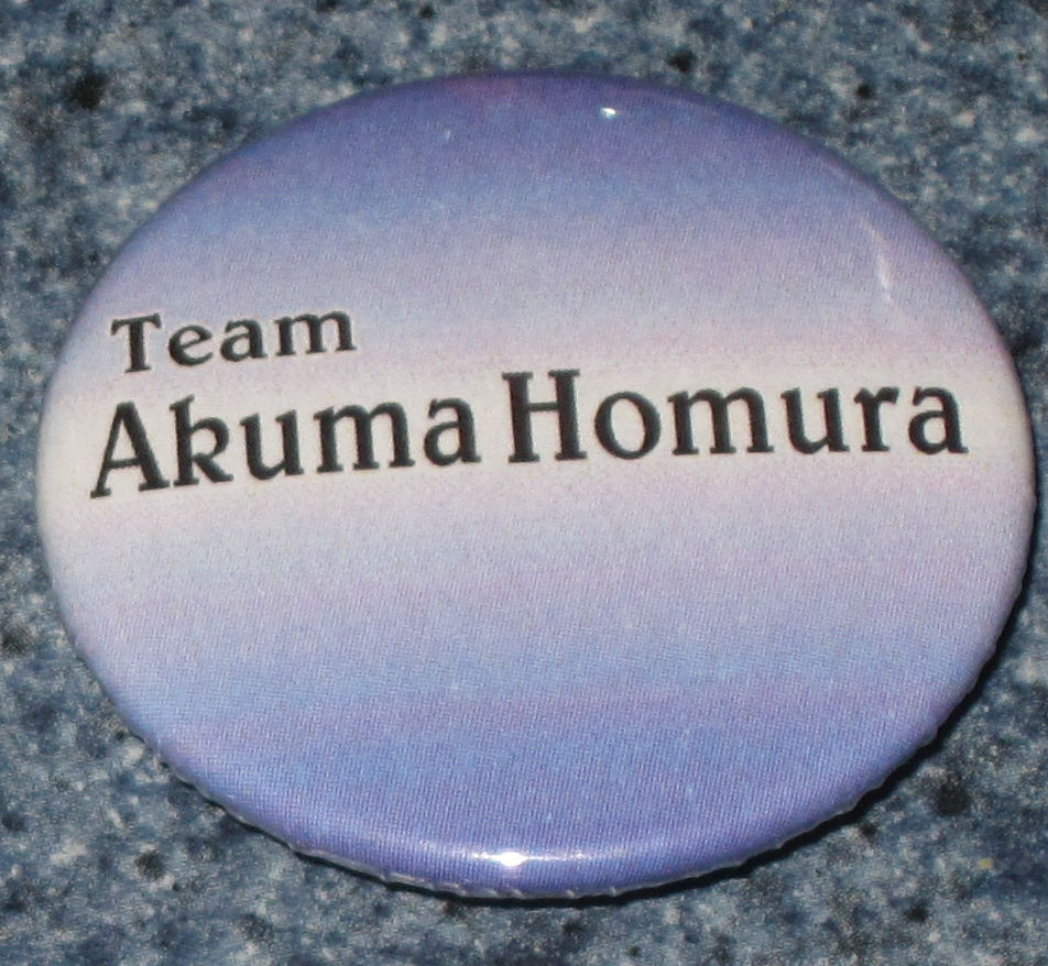 The set also includes buttons that say, "I defeated a Witch and all I got was this lousy Grief Seed," "The Wish is a lie," "Team Madokami," and "Team AkumaHomura."