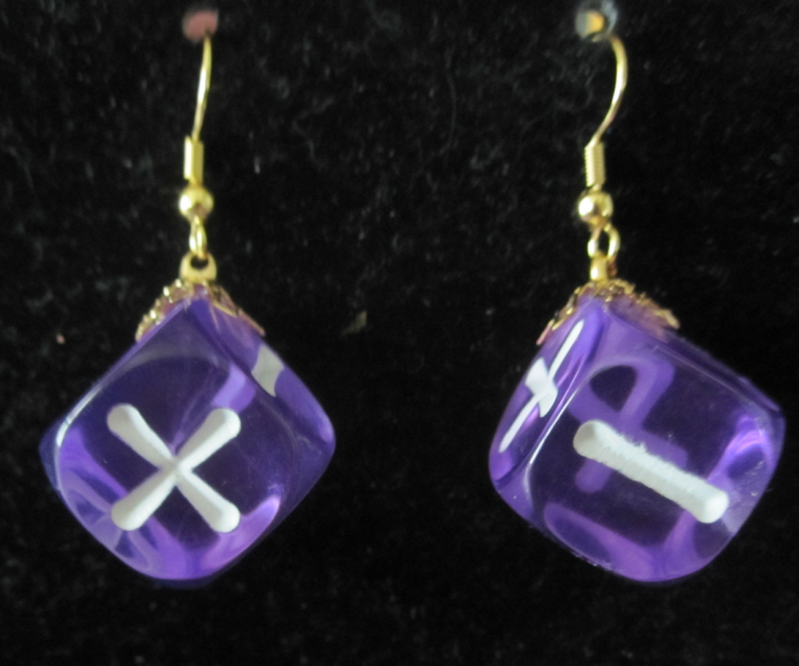 Purple dice with white numbers