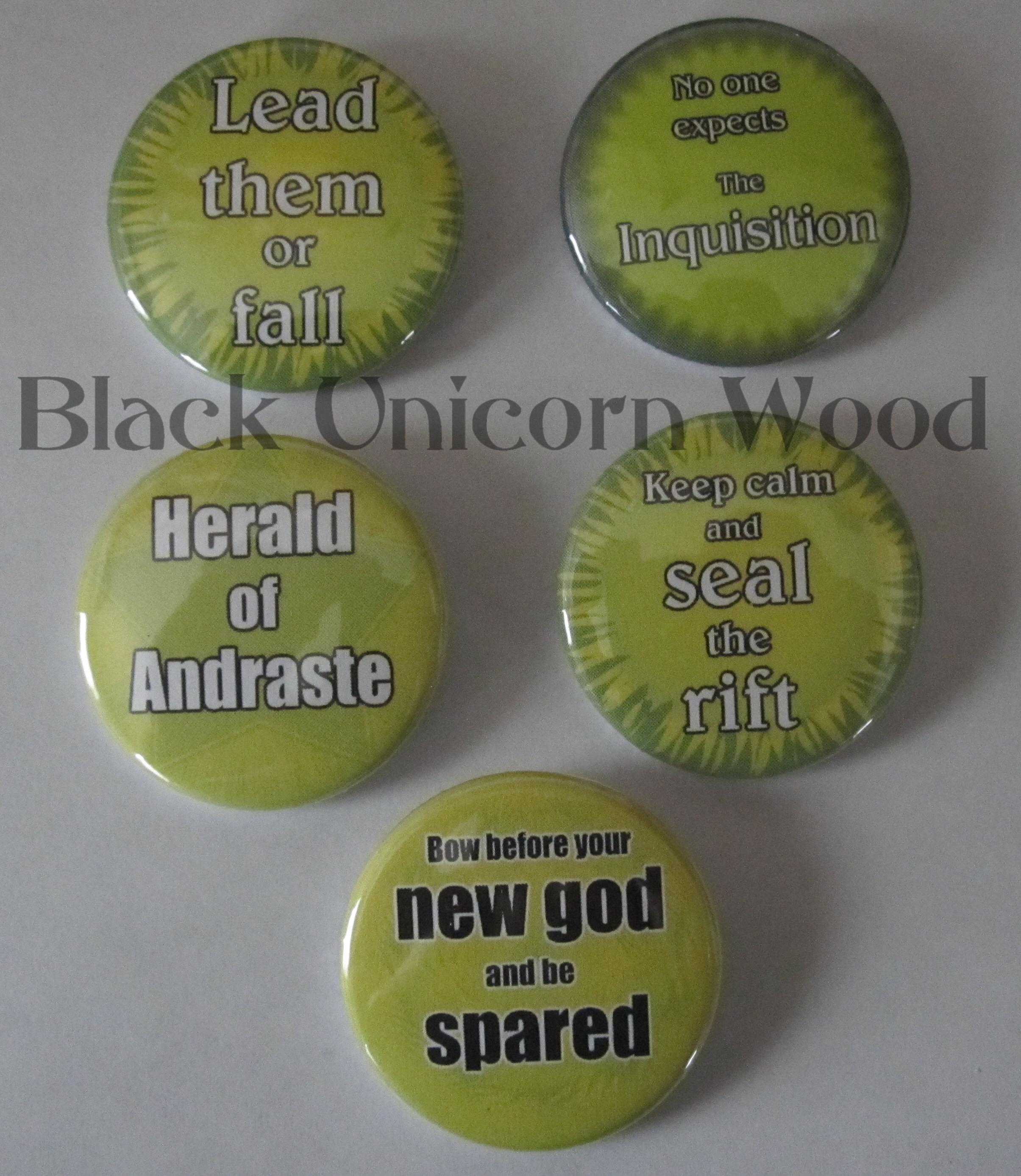 A set of buttons inspired by Bioware's "Dragon Age" series of videogames.