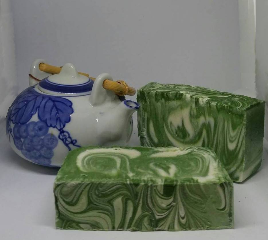 Indulge your senses, and find your inner tranquility with this soap swirled in shades of green and creamy white, and scented with a soothing blend of chamomile, green tea leaves and wild violet. ((Note for customers using screen readers: Code 3613))