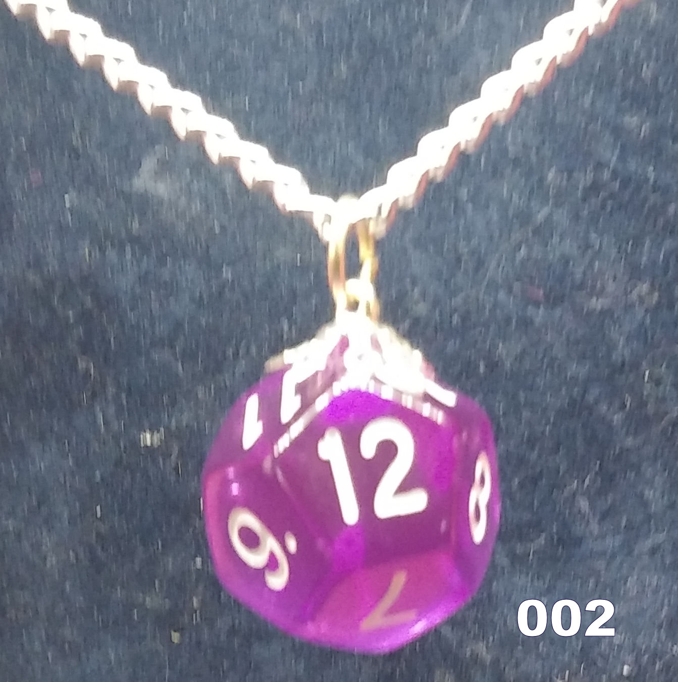 Show off your tabletop gamer pride with a twelve-sided die pendant! Choose from any of the pendants pictured. Each pendant comes on a 20-inch gold- or silver-tone aluminum curb chain, or twenty inches of satin cord (see photos for details), and fastens with a complementary spring ring or lobster claw clasp. When making your selection, please note the number in the bottom right hand corner of the photo; this is the pendant you will receive.