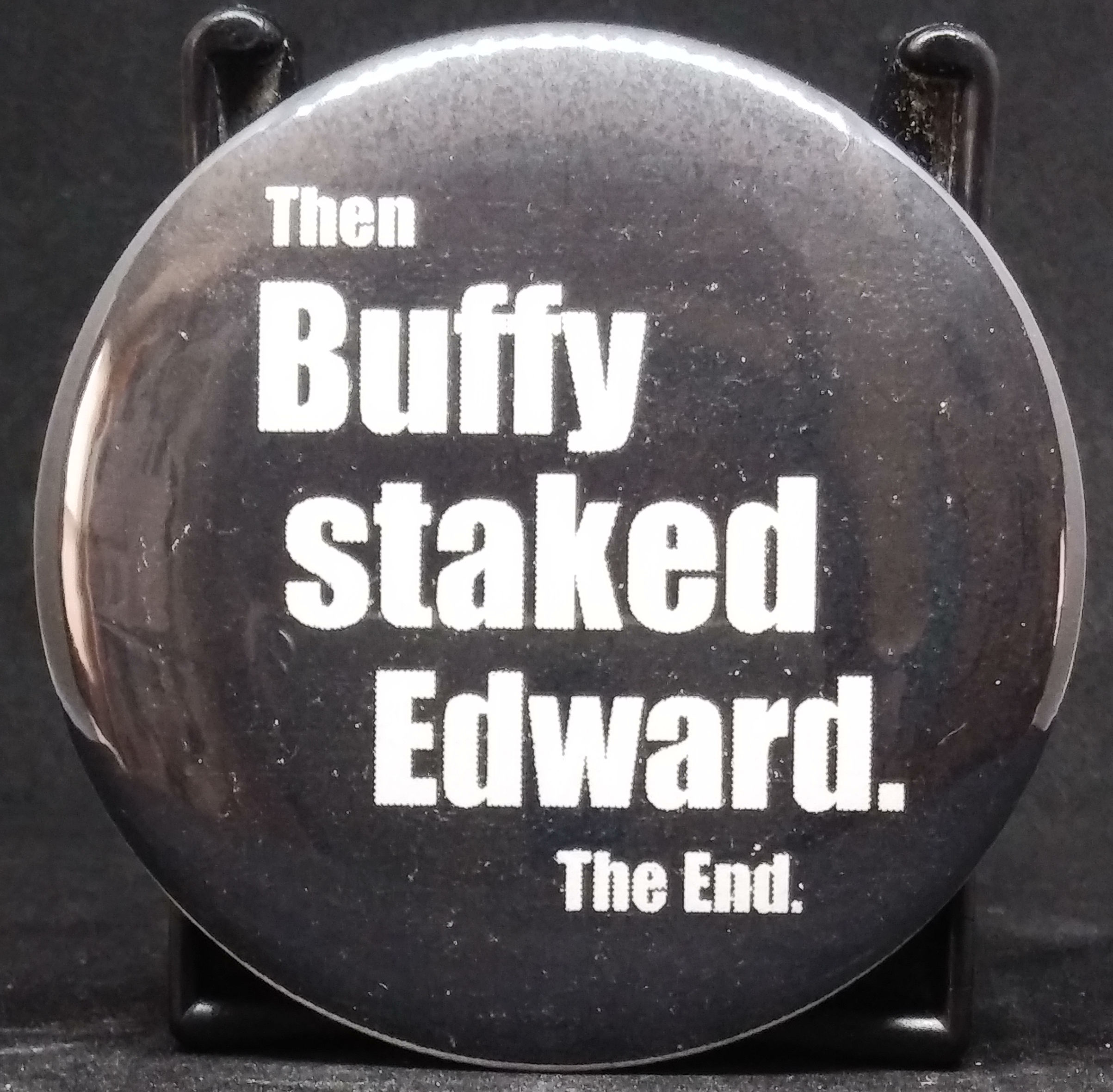 For those who prefer their vampires without the sparkles. This is a 2.25-inch diameter button. It can also be purchased as a magnet or pocket mirror.